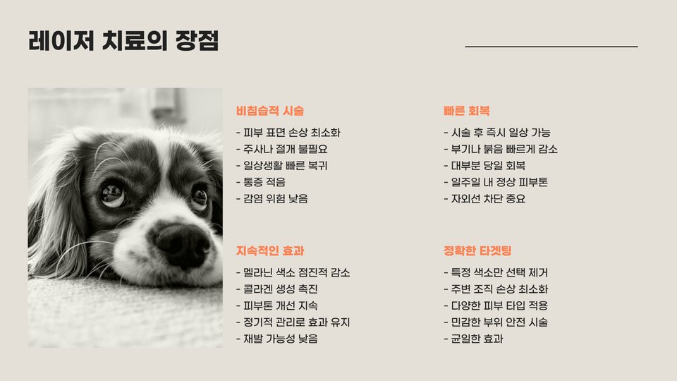 레저 치료는 피부의 색소 침착을 줄이는 데 사용되는 비침습적 방법입니다. 이 치료는 특정 파장의 빛을 사용하여 피부의 멜라닌 색소에 직접 작용합니다. 멜라닌은 피부의 색을 결정하는 주요 성분으로, 과도한 멜라닌 생성을 통해 색소침착이 발생합니다. 레이저는 멜라닌을 파괴하고 진피층에 있는 세포들을 자극하여 새로운 피부 세포의 생성을 촉진합니다.