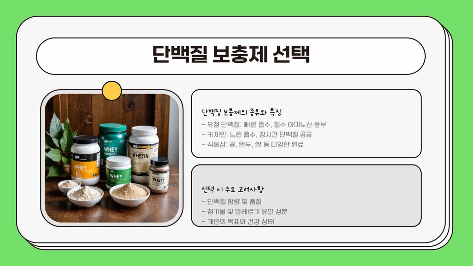 - 단백질 식단 선택은 개인 목표와 필요에 맞춰야 함