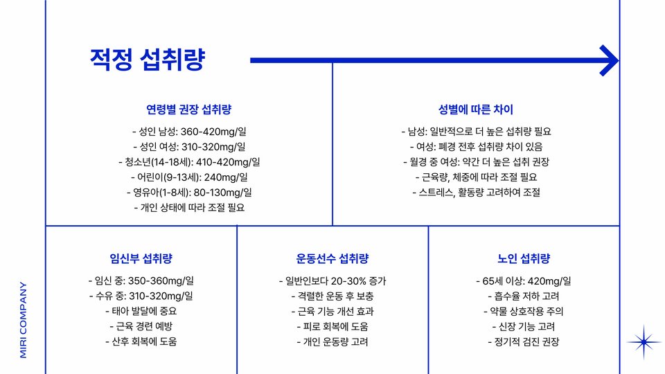 - 마그네슘 영양제 선택 시 고려 사항: