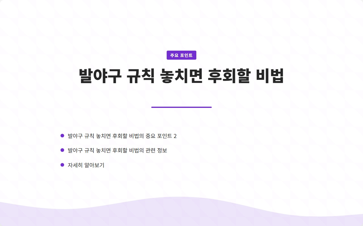 발야구는 규칙이 복잡해 보일 수 있지만, 충분히 이해하고 연습하면 재미있고 흥미로운 스포츠로 즐길 수 있습니다. 이제는 발야구 규칙을 확실히 익혀서 즐거운 경기를 만들어 보세요!