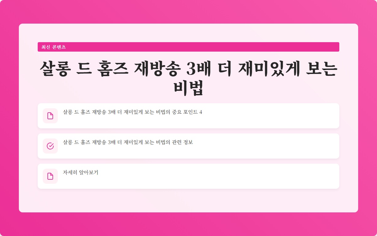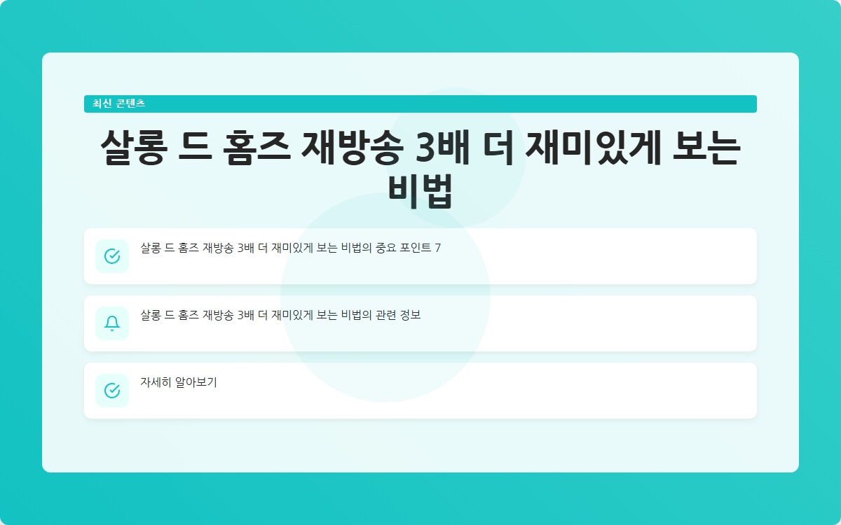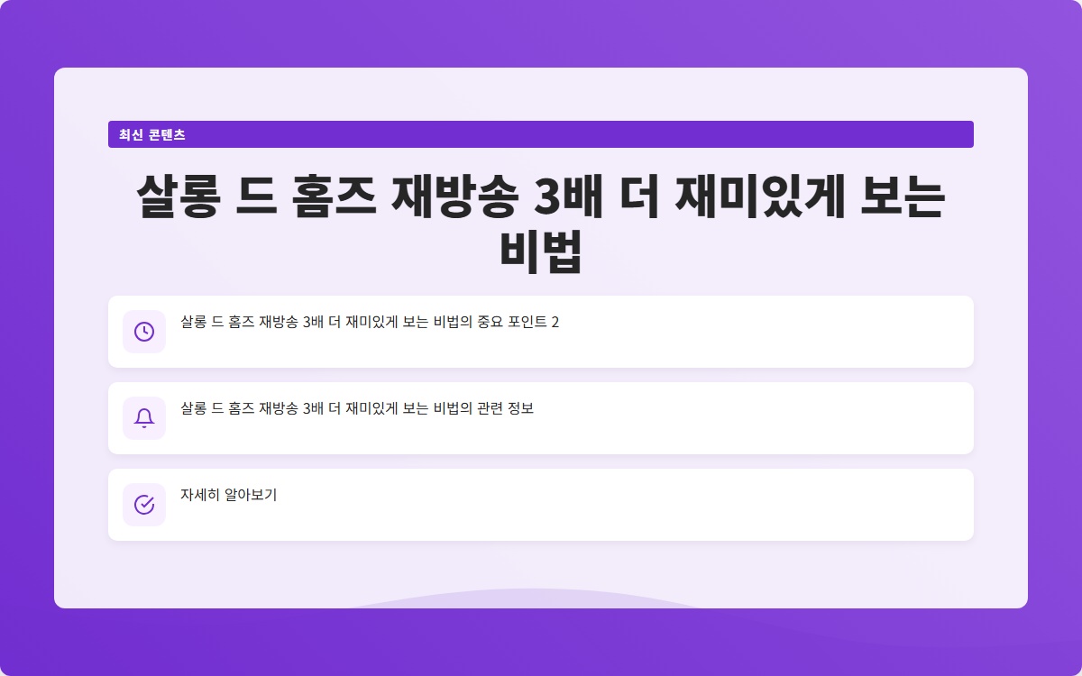 드라마 살롱드홈즈는 흥미로운 캐릭터와 복잡한 사건 전개로 많은 사랑을 받고 있습니다. 그러나 재방송을 볼 때마다 의욕이 떨어지는 분들이 많습니다. 이 글에서는 그러한 고민을 해결하고, 어떻게 하면 재방송을 더 재미있게 감상할 수 있을지 알아보겠습니다.