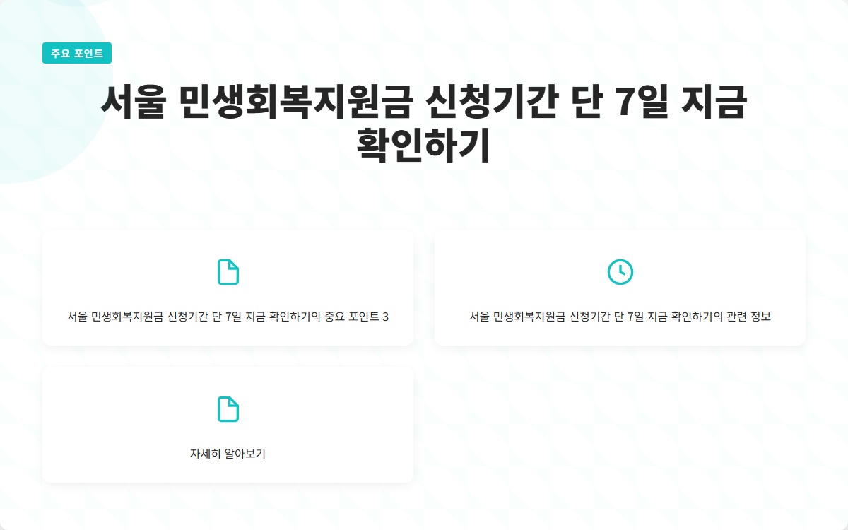 서울 민생회복지원금 신청은 짧은 기간에 집중되어 있습니다. 빠르게 신청할 수 있도록 필요한 정보를 미리 확보하고, 지원금을 통해 경제 회복에 기여하는 것이 중요합니다. 지금 바로 준비하세요!