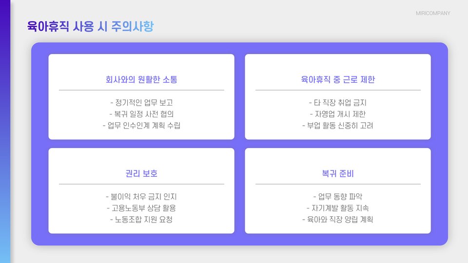 - 육아휴직 신청 전 정확한 정보 수집이 필요하다.