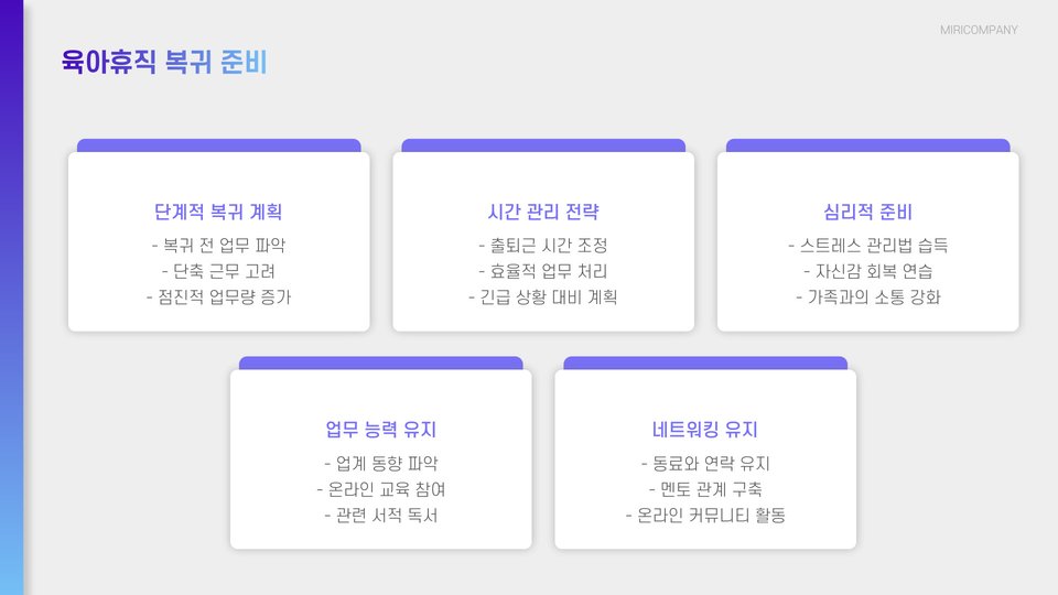 - 복직 준비를 위해 업무 변화에 대한 정보 공유가 필요하다.