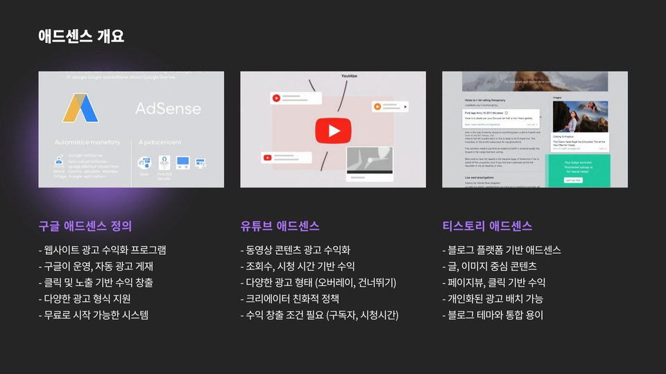 티스토리는 블로그 플랫폼으로, 사용자가 작성한 글에 광고를 삽입하여 수익을 올리는 방식입니다. 티스토리 애드센스는 주로 텍스트 기반 콘텐츠에 초점을 맞추고 있으며, CPM 방식도 적용됩니다. 그러나 유튜브와는 달리 직접적인 시청률 기준이 없기 때문에 콘텐츠 품질과 방문자 유치가 더욱 중요해집니다.