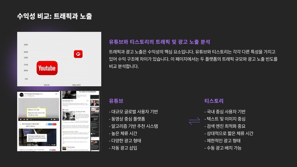 - 유튜브는 동영상 콘텐츠 기반으로 높은 수익 가능성