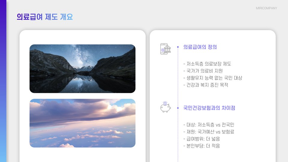 | 의료급여 정의 | 저소득층을 위한 정부의 의료 지원 프로그램 |