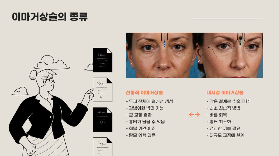 - 이마거상은 주름과 처짐을 개선하는 수술입니다.
