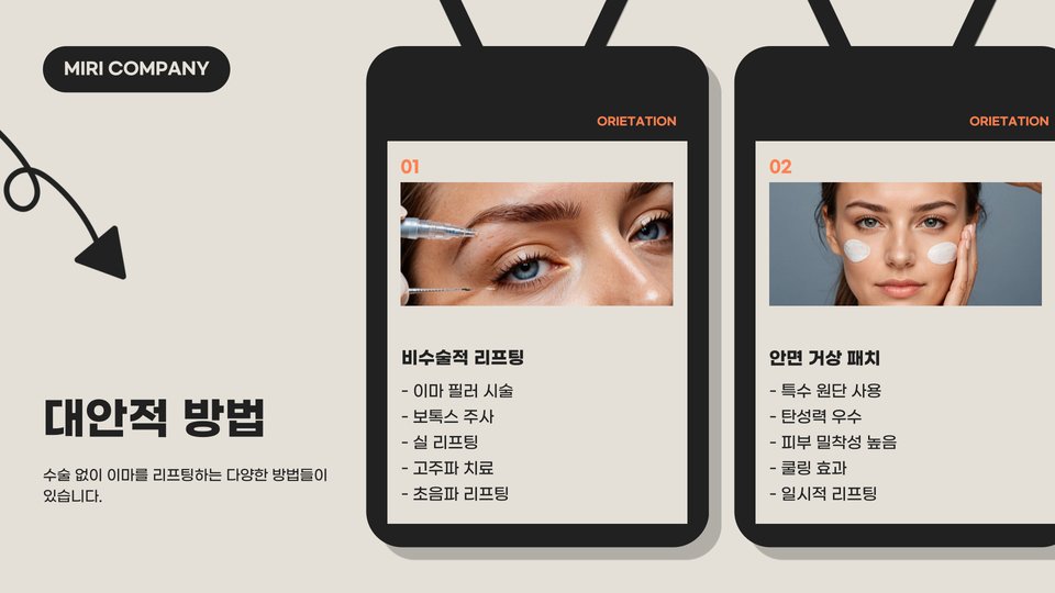 - 이마거상은 주름과 처짐을 개선하는 수술입니다.