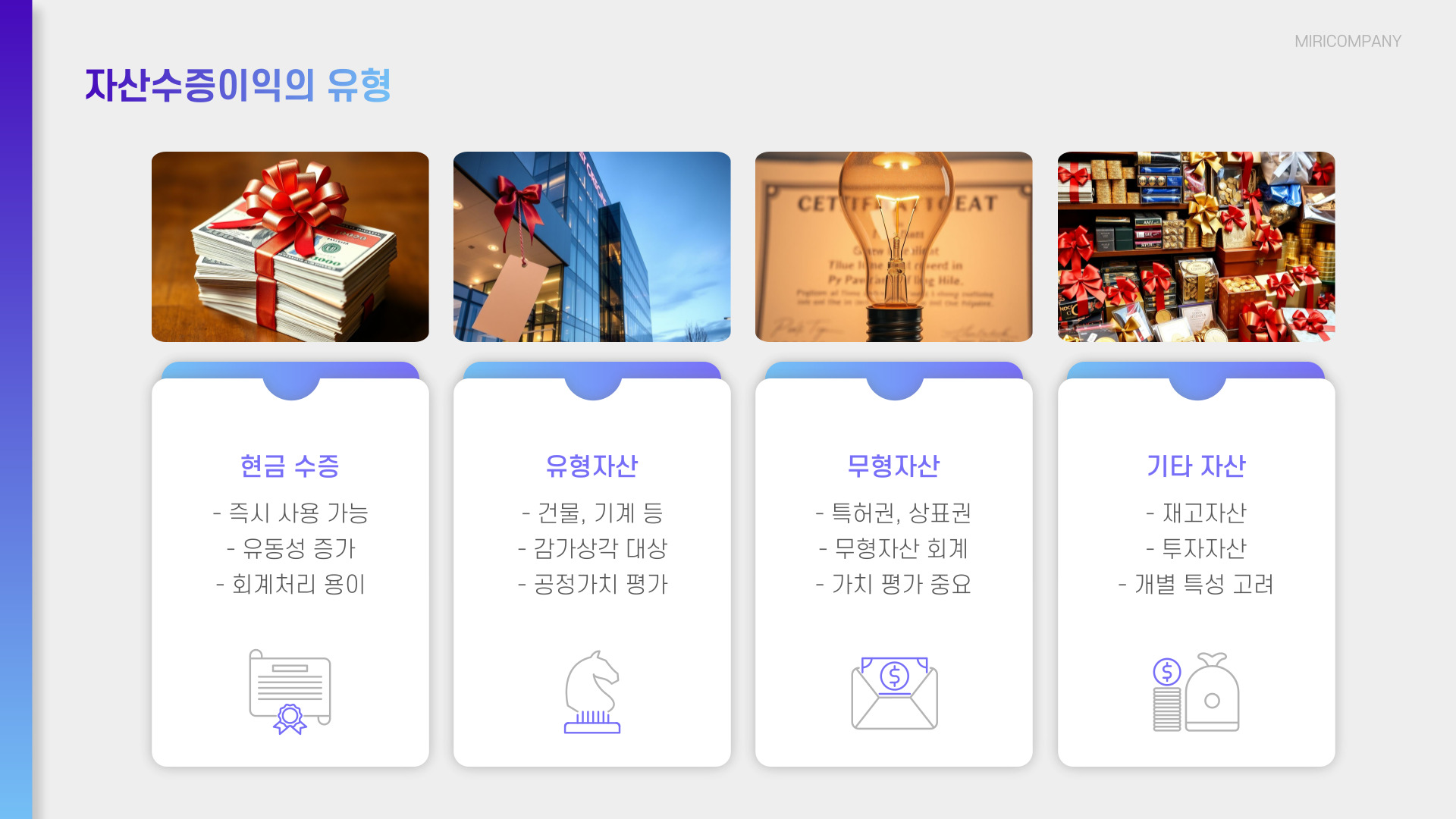 - 자산수증이익은 자산의 가치 상승으로 인한 이익을 의미