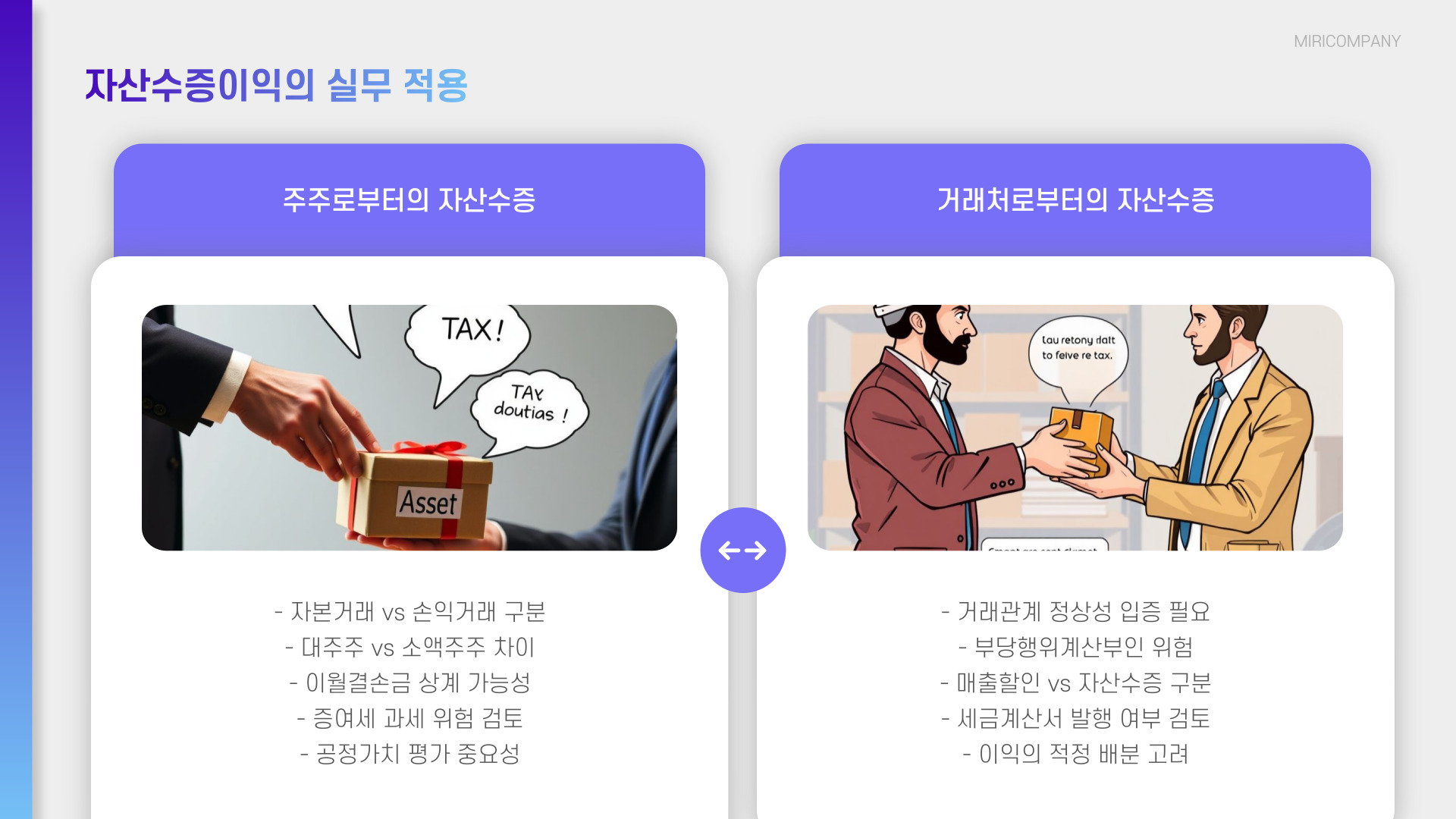 - 부동산, 주식, 채권 등이 자산수증이익으로 연결될 수 있다.
