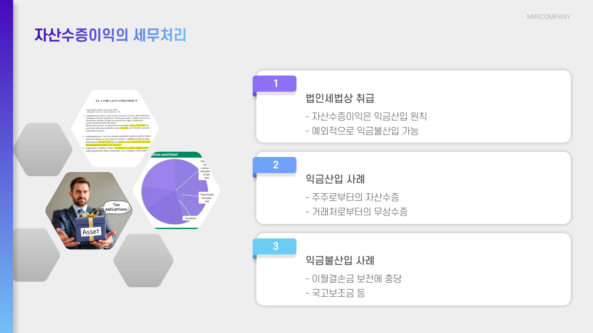 - 부동산, 주식, 채권 등이 자산수증이익으로 연결될 수 있다.