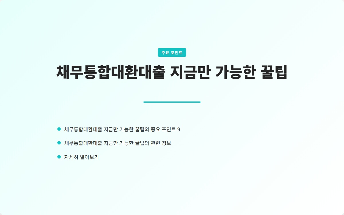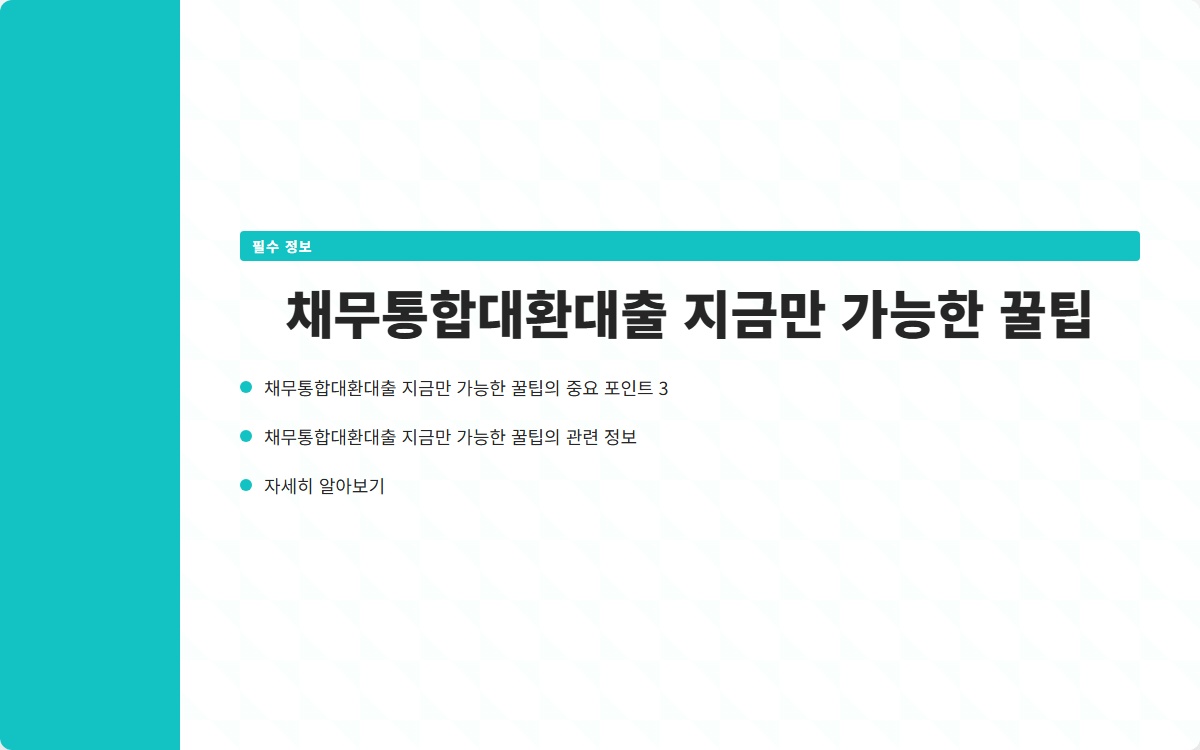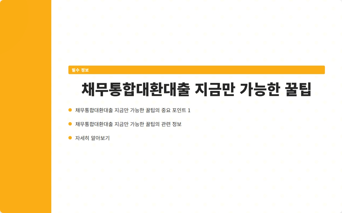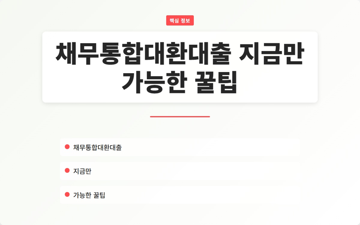 채무통합대환대출이란 무엇일까요? 여러 개의 빚으로 고민하는 당신, 이 해결책이 궁금하지 않으신가요? 채무통합대환대출로 재정 상황을 개선하는 방법을 지금 확인해보세요!