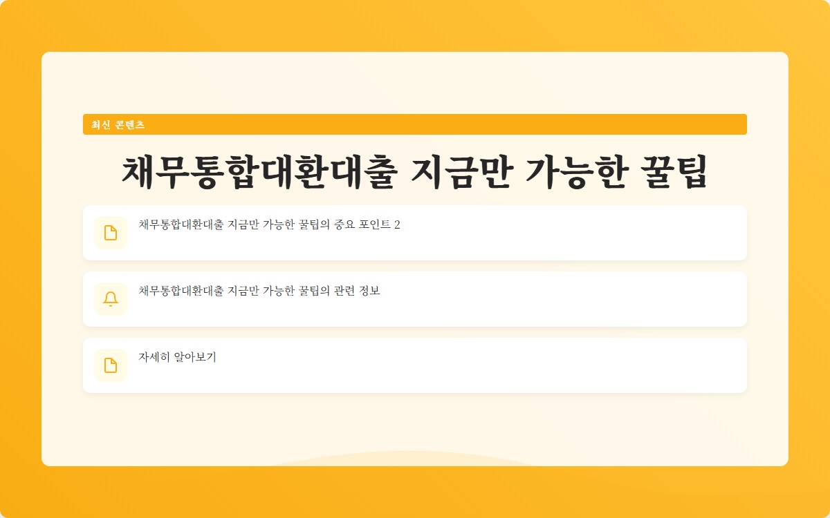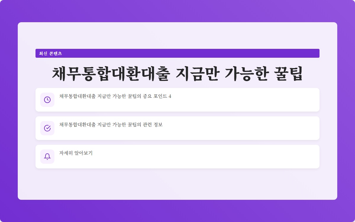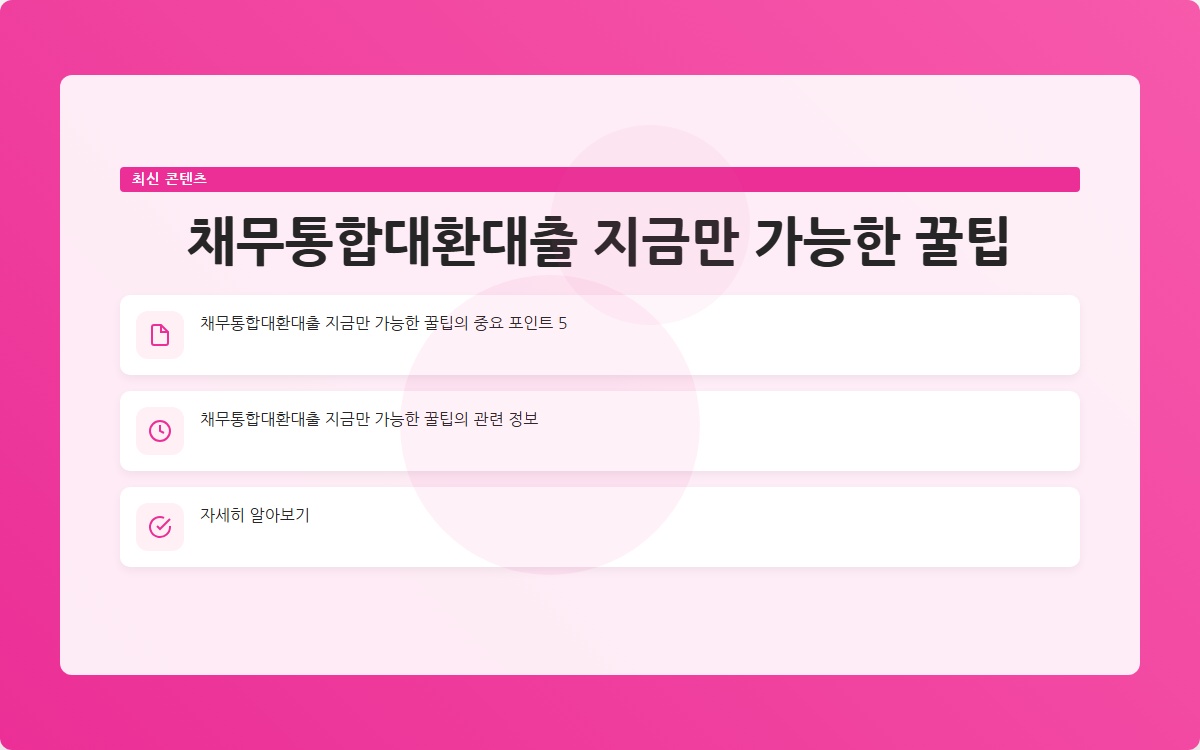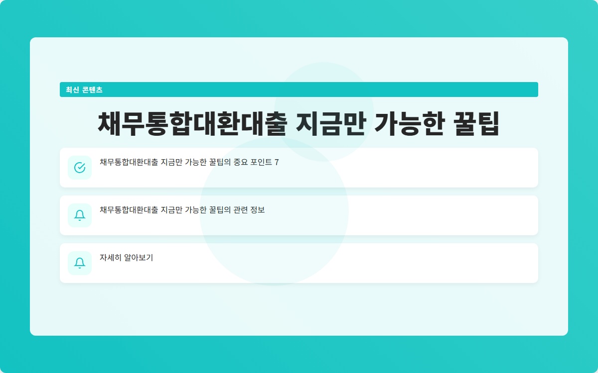 채무통합대환대출이란 무엇일까요? 여러 개의 빚으로 고민하는 당신, 이 해결책이 궁금하지 않으신가요? 채무통합대환대출로 재정 상황을 개선하는 방법을 지금 확인해보세요!