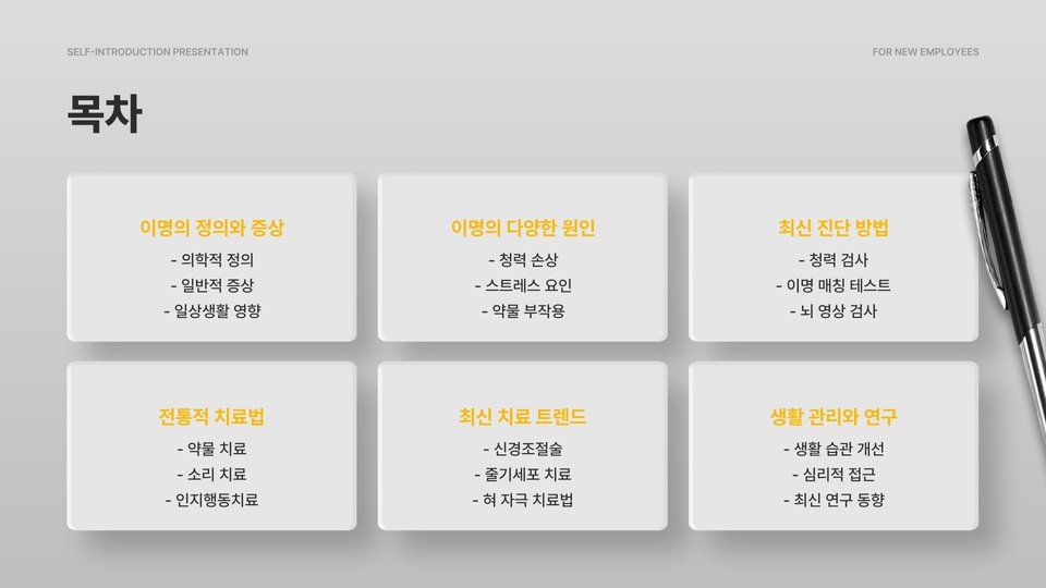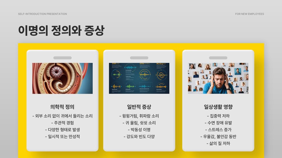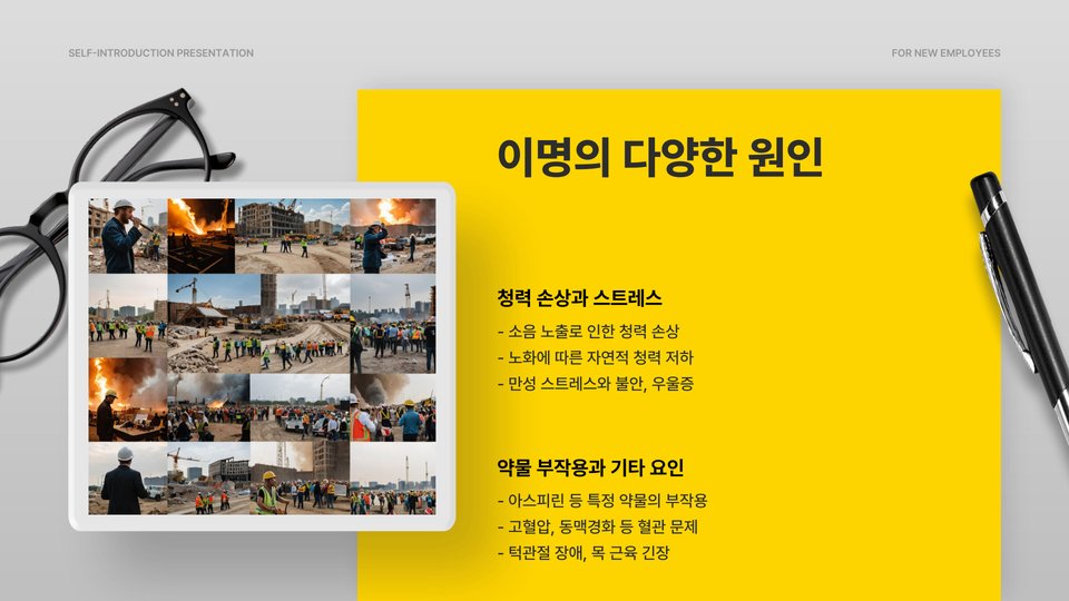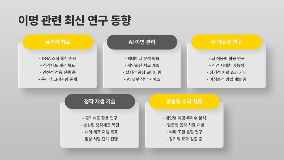 - 이명의 원인: 귀 질환, 스트레스, 외부 소음 등