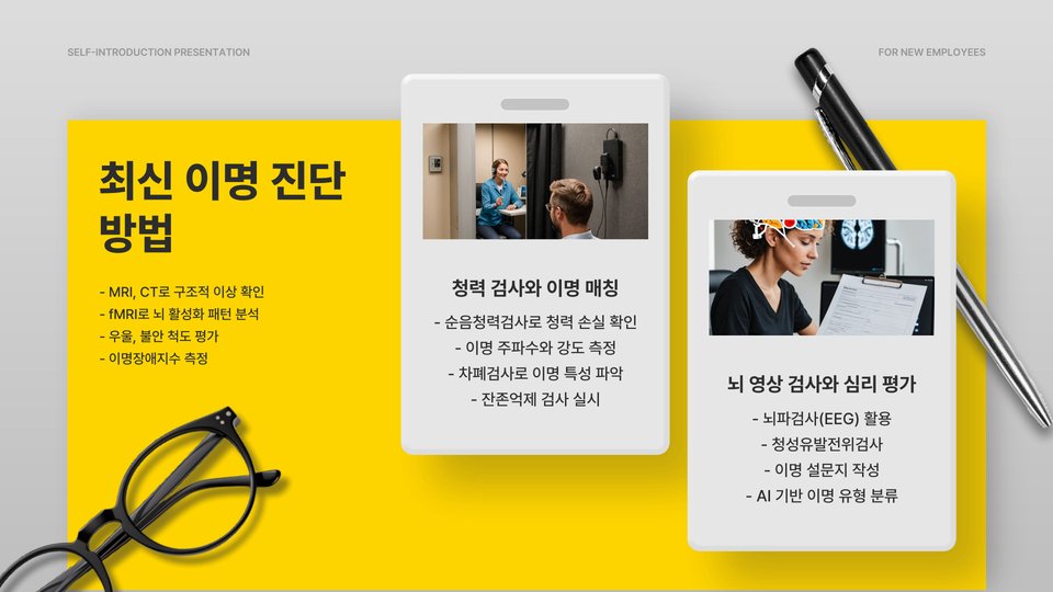 - 이명의 원인: 귀 질환, 스트레스, 외부 소음 등