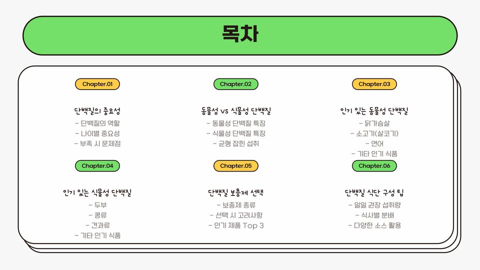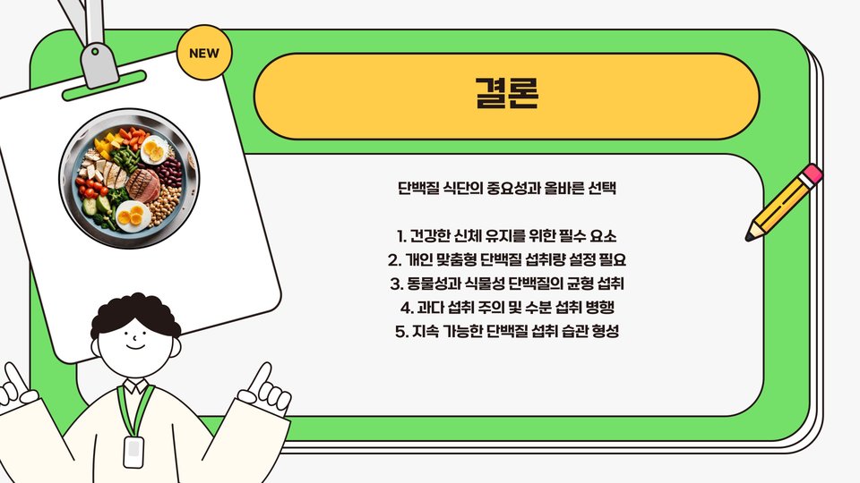 - 단백질 식단 선택은 개인 목표와 필요에 맞춰야 함