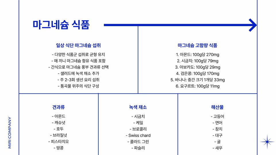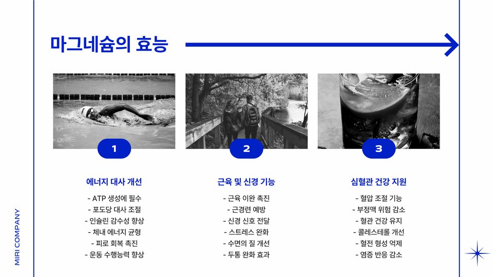 - 마그네슘의 주요 효능: