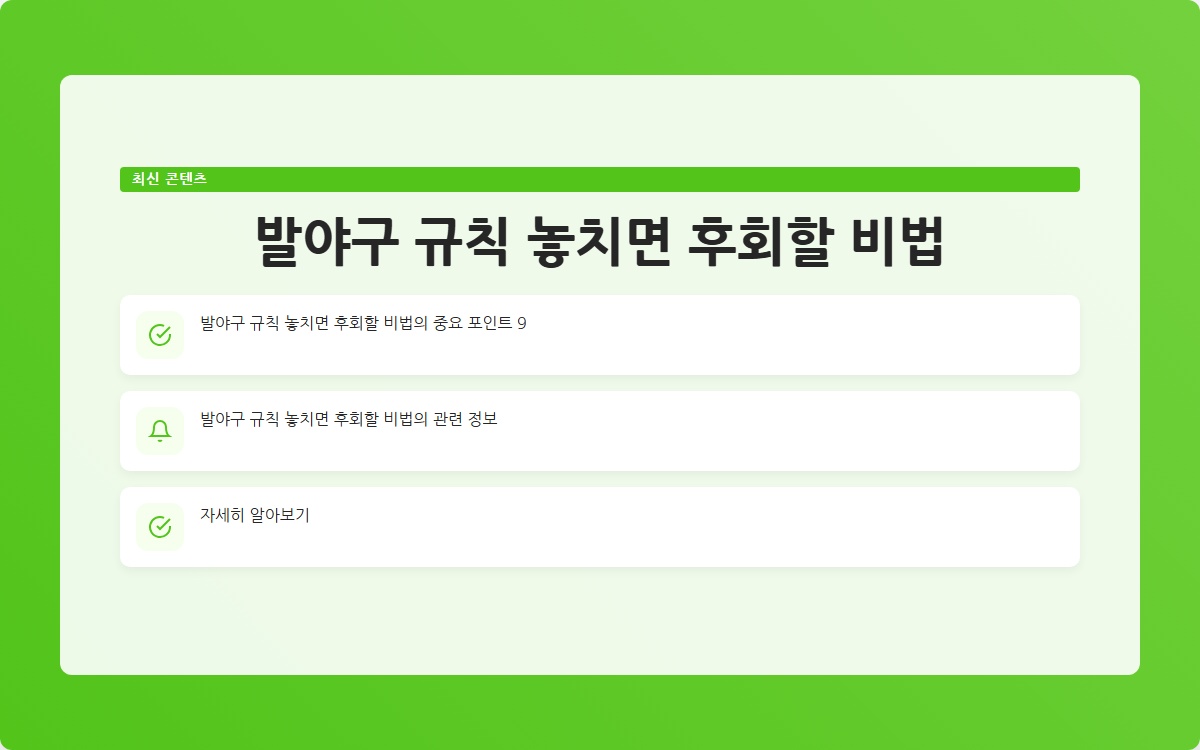 발야구의 규칙을 잘 이해하고 미리 준비하면 더욱 즐거운 경기를 할 수 있습니다. 위에서 언급한 단계별 해결책을 적용해 보세요. 더 많은 정보는 블로그를 방문해 주세요!